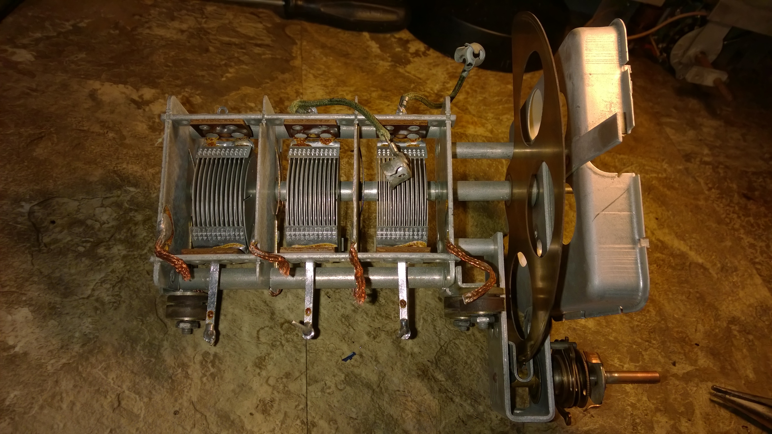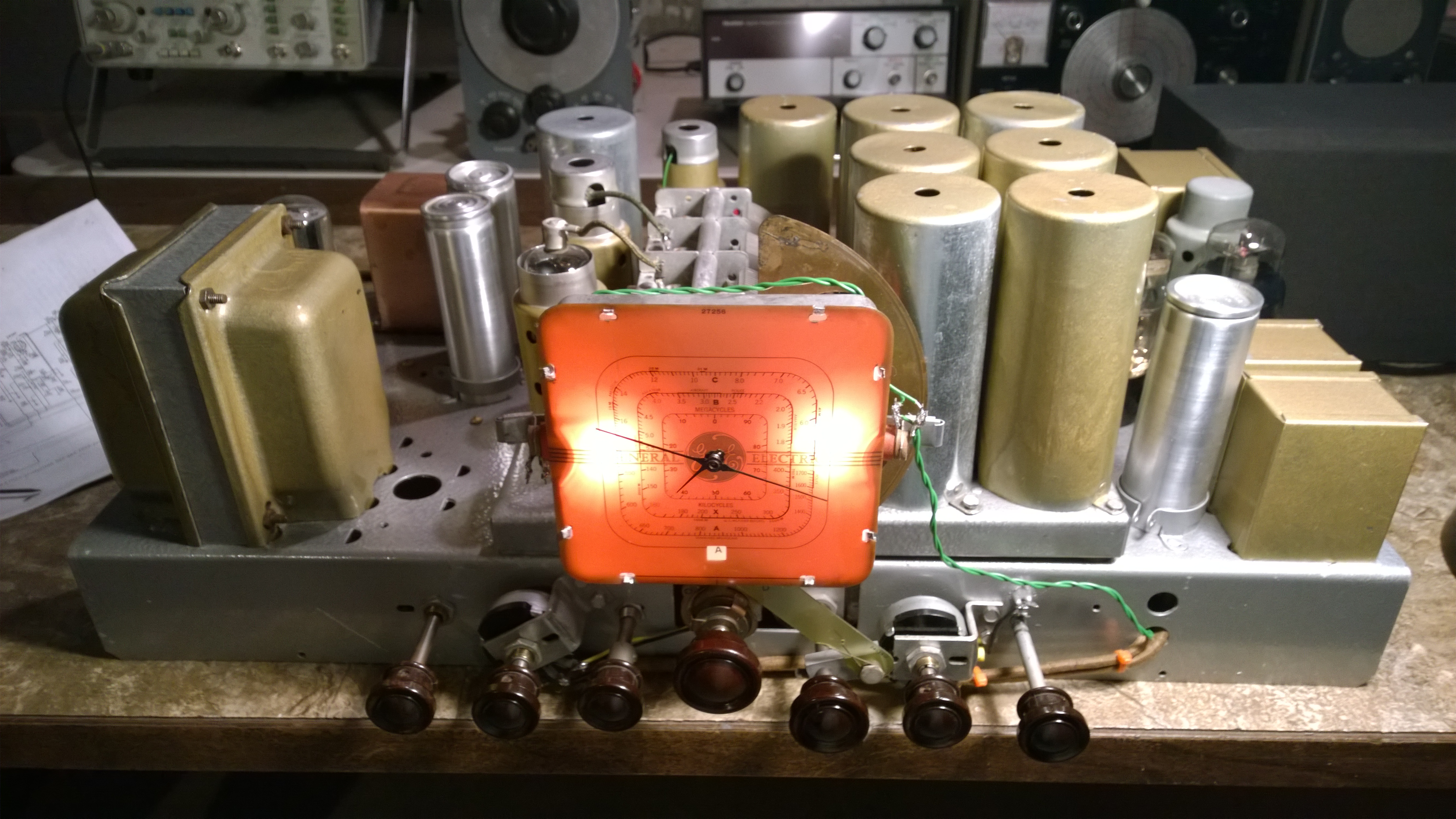 This radio chassis was used by both GE and RCA for radios, as RCA was a subsidiary of GE until 1932 and maintained relations for some years after. (The hobby collecting was accompanied with radio history) That part is fairly mundane. Interesting is the technical construction of the radio, which includes a daughter chassis for the high frequency sections for mechanical isolation. The tuning scheme uses a needle dial and vernier mechanisms for coarse and fine tuning. Two triodes, driven by an interstage transformer, in push pull configuration drive the interstage transformer for the push pull final output tubes. This really shows the high end aspect of this radio, since a cheaper radio would use an inverter tube and attenuation. The power supply uses two rectifier tubes with their plates in parallel, showing just how audio focused this radio was. Serious amplifier wattage for 1934. This radio otherwise has the RF section of a six tube radio.