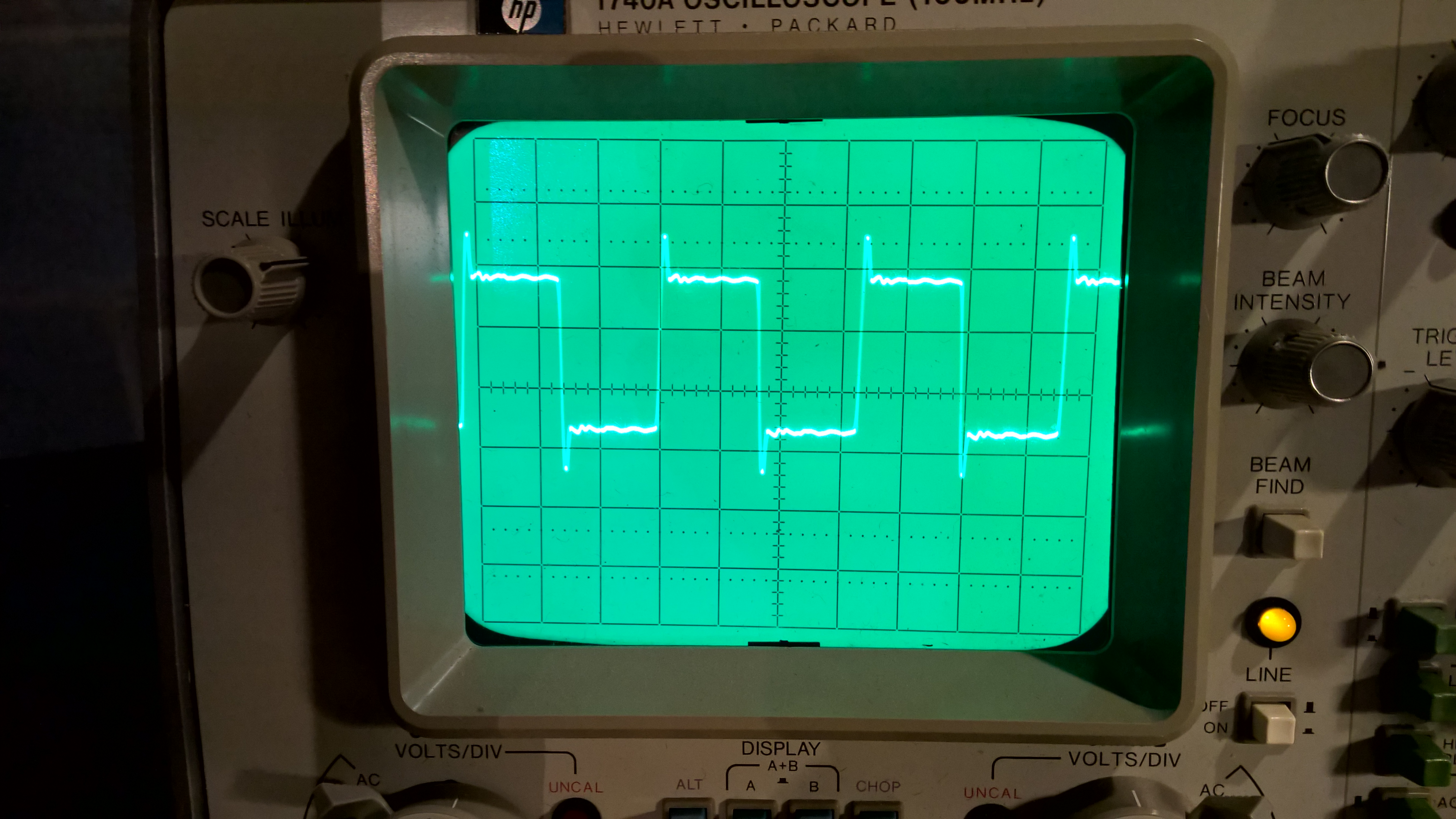 I do have this wonderfully sharp trace of gate driver output on my HP 1740A oscilloscope. Just wanted to show it.