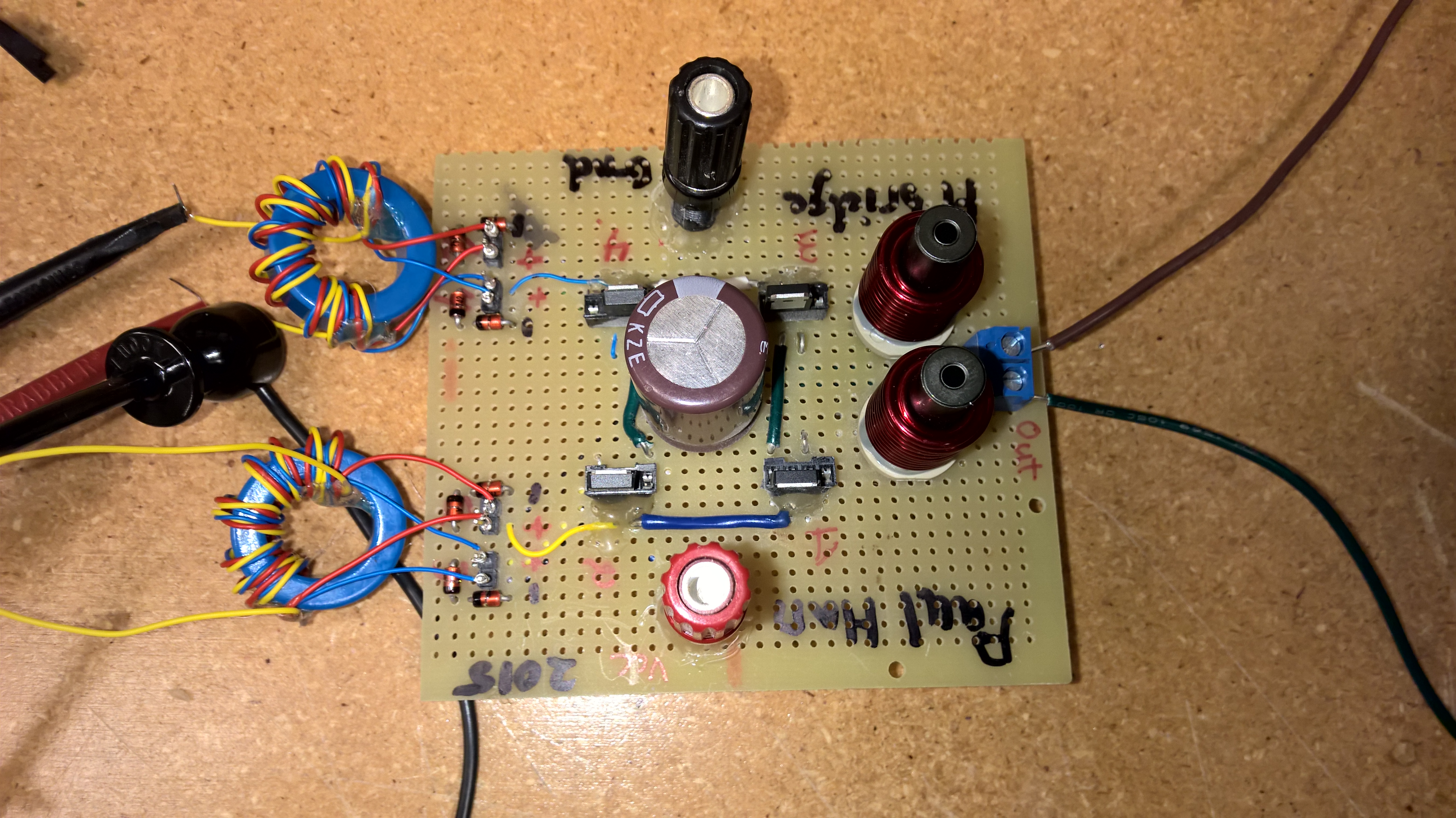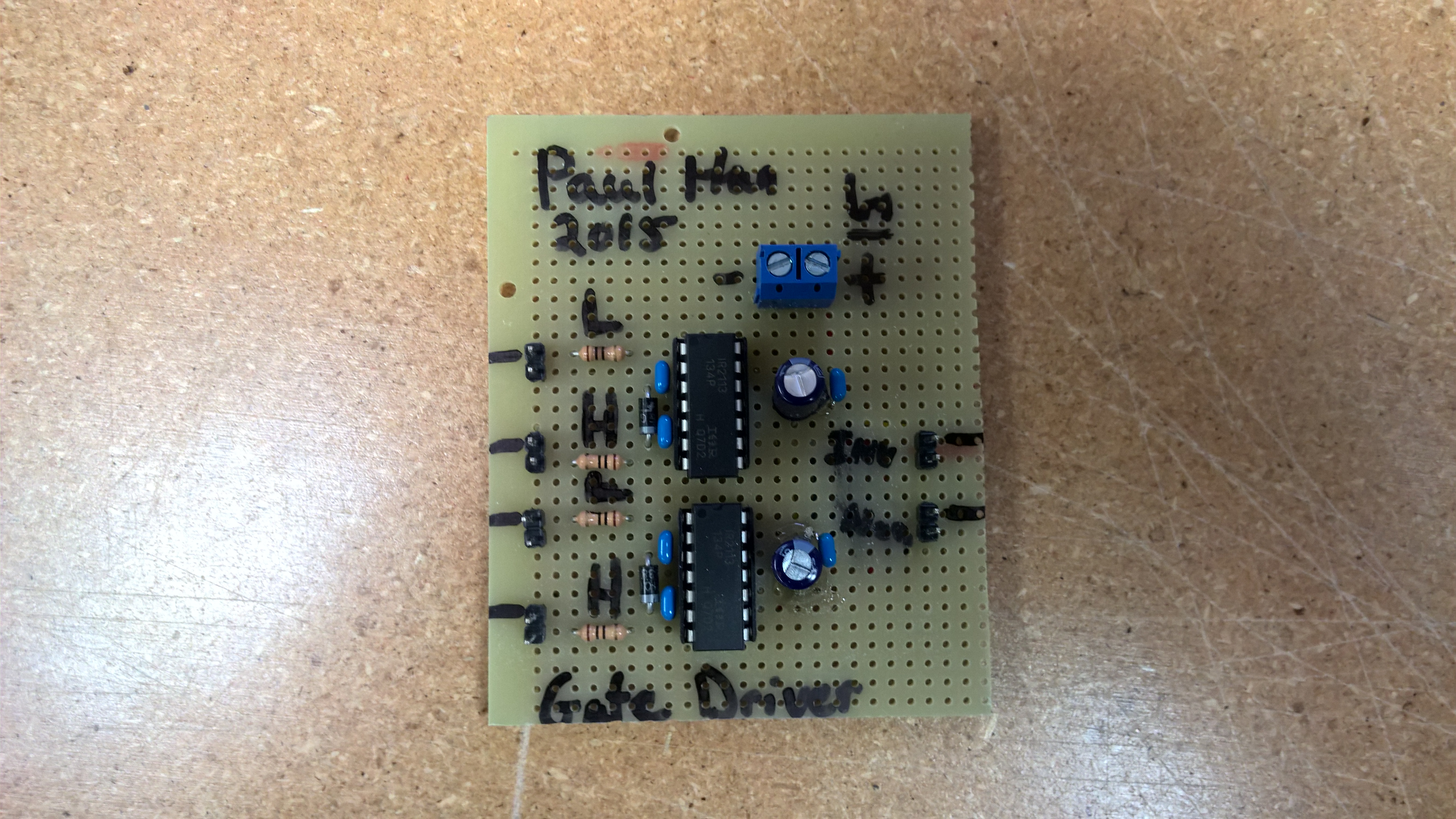 I didn’t have time to wait for PCBs to be manufactured, so this 200kHz RF circuit was built using through hole and perf board technology. Not exactly ideal. You can see my hand wound gate drive transformers in the first picture. They actually worked really well, eBay ferrite cores and all! Beat the pants off the commercial samples I ordered.